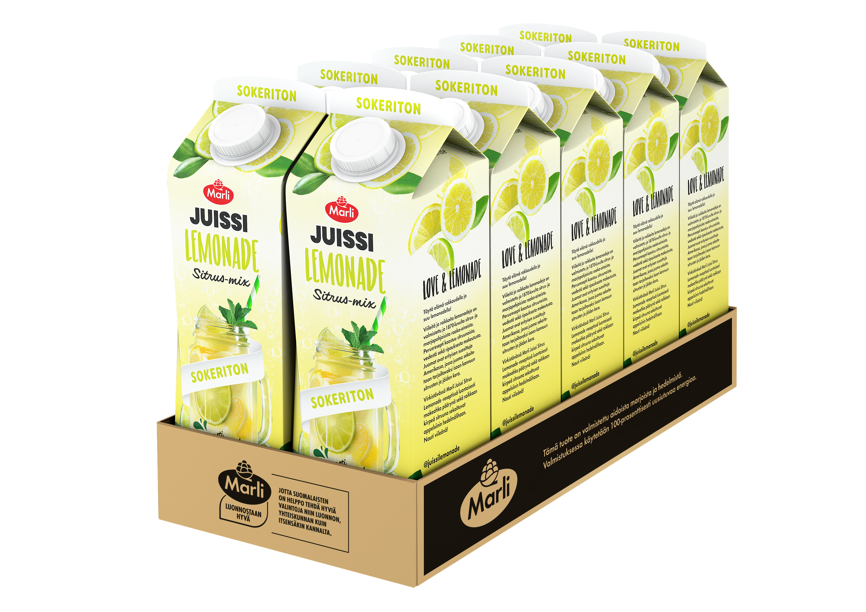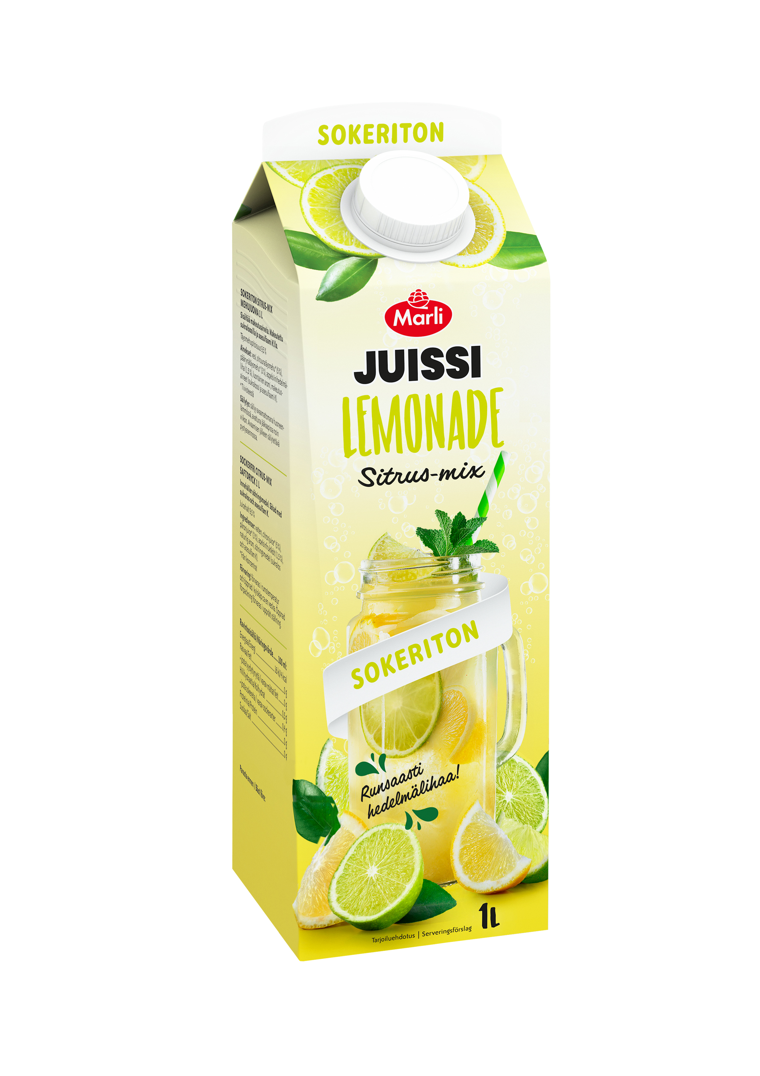 Sokeriton. Sisältää makeutusaineita. Makeutettu sukraloosilla ja asesulfaami K:lla. Sisältää runsaasti hedelmälihaa.